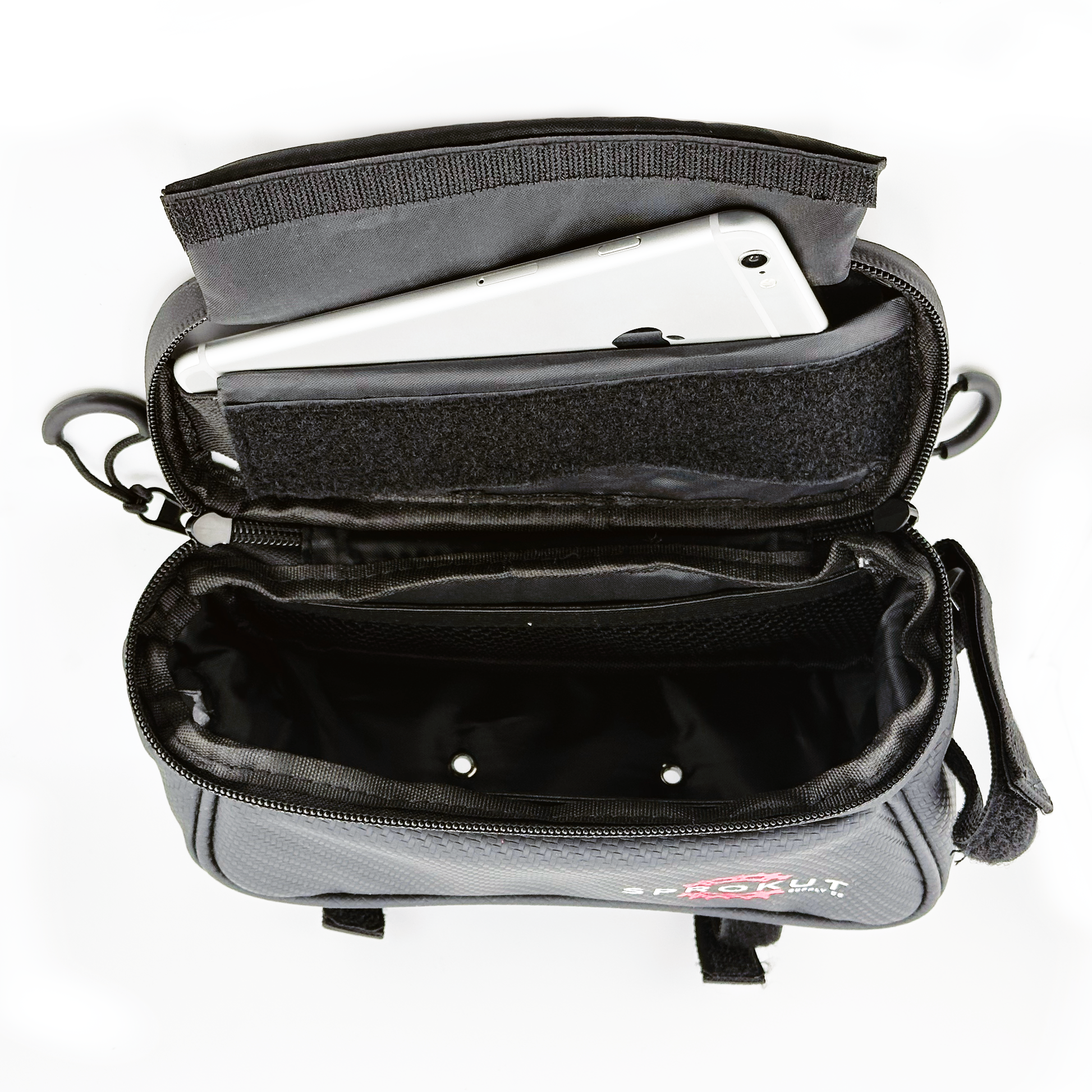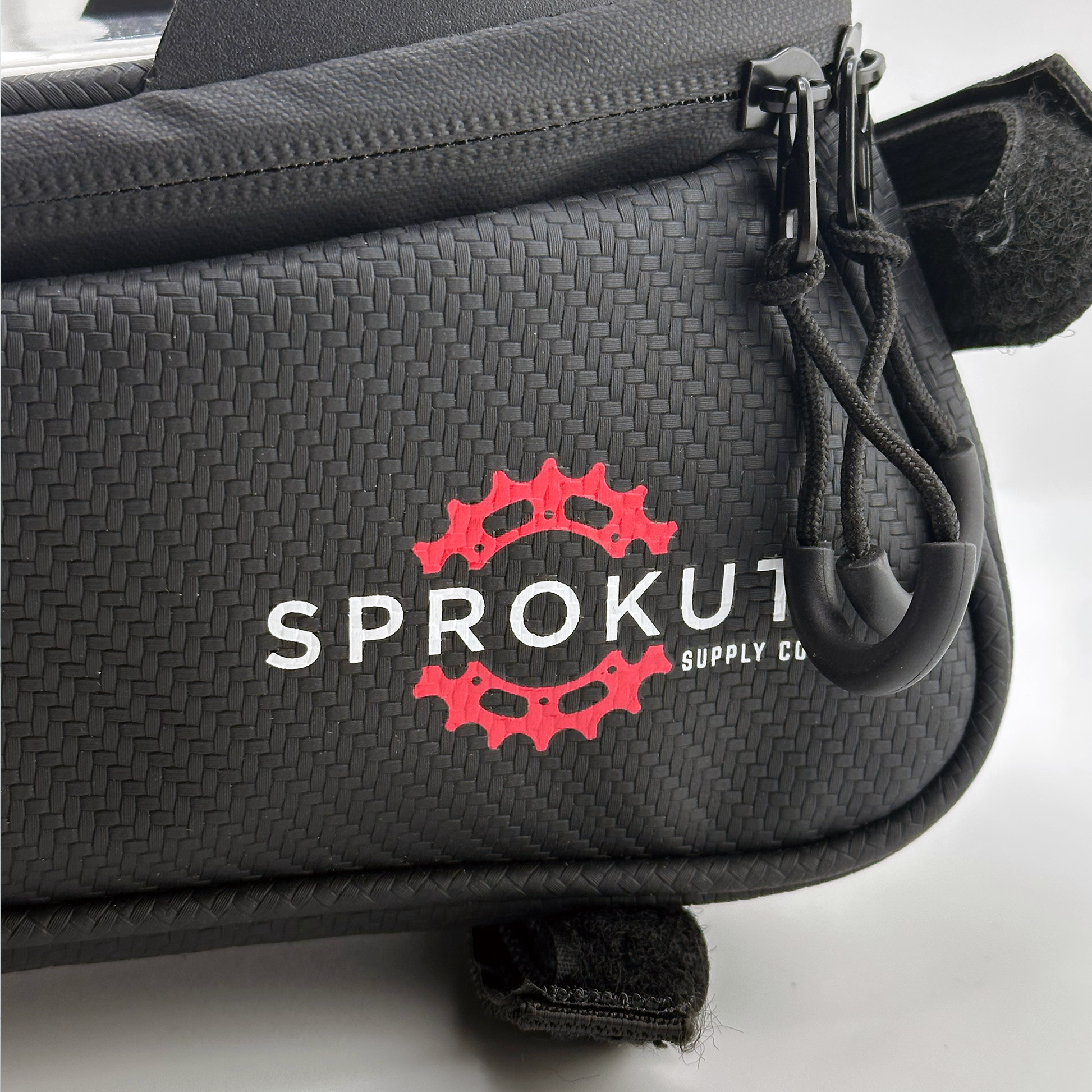 "The Sprokut Supply Co Xplore Top Tube Bag features water resistant materials offers ample storage for long rides, fitting essentials like a phone (up to 6.5""), battery, mini pump, repair kits, keys, and wallet. Compatible with iPhone models up to XR/XS MAX.Touchscreen-Friendly: The high-sensitive TPU film window allows easy phone use while riding, perfect for navigation. (Note: Touch ID not supported.)